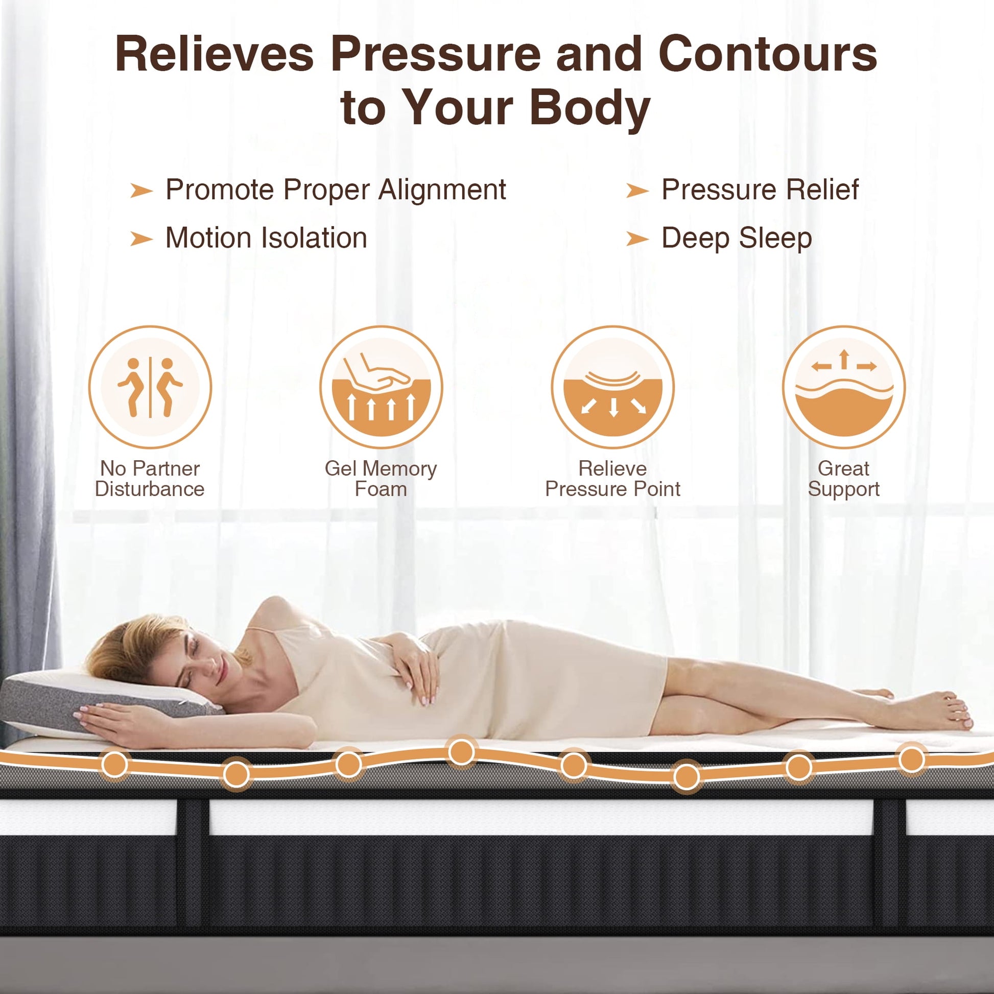 Enjoy adaptive comfort that cradles your pressure zones. The memory foam layer conforms to your body’s curves, helping alleviate strain in areas like the lower back, hips, and shoulders—ideal for anyone seeking a more relaxing sleep.