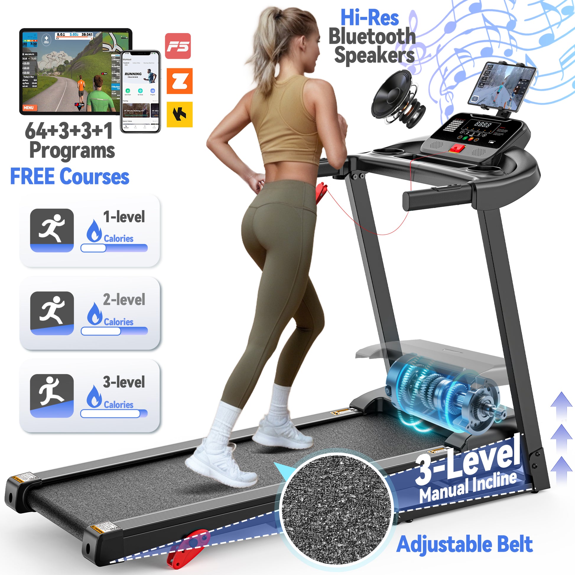2.75HP Folding Treadmill with 3-Level Adjustable Incline, 7.5mph Speed Running Machine,Treadmill 300 lb Capacity, Silent Brushless Motor, 64 Preset Training Program Electric Treadmills for Home Use