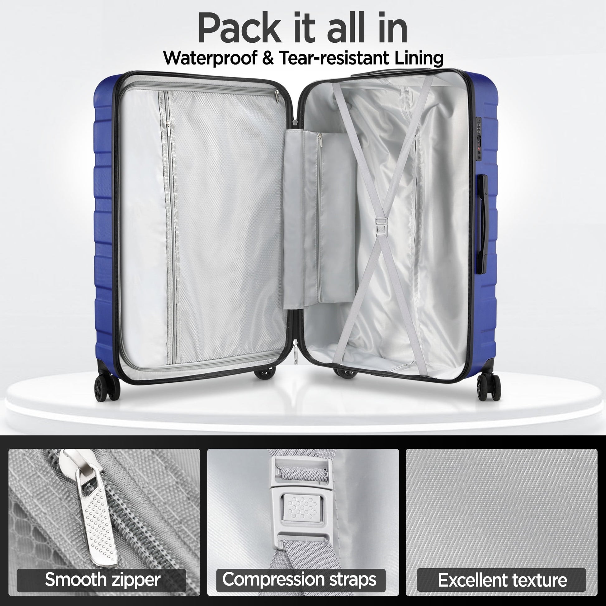 【24" Carry-On Spinner Luggage】: 17.7"L x 10.6" W x 26"H, 6.88 lbs, 5-7 days travel.