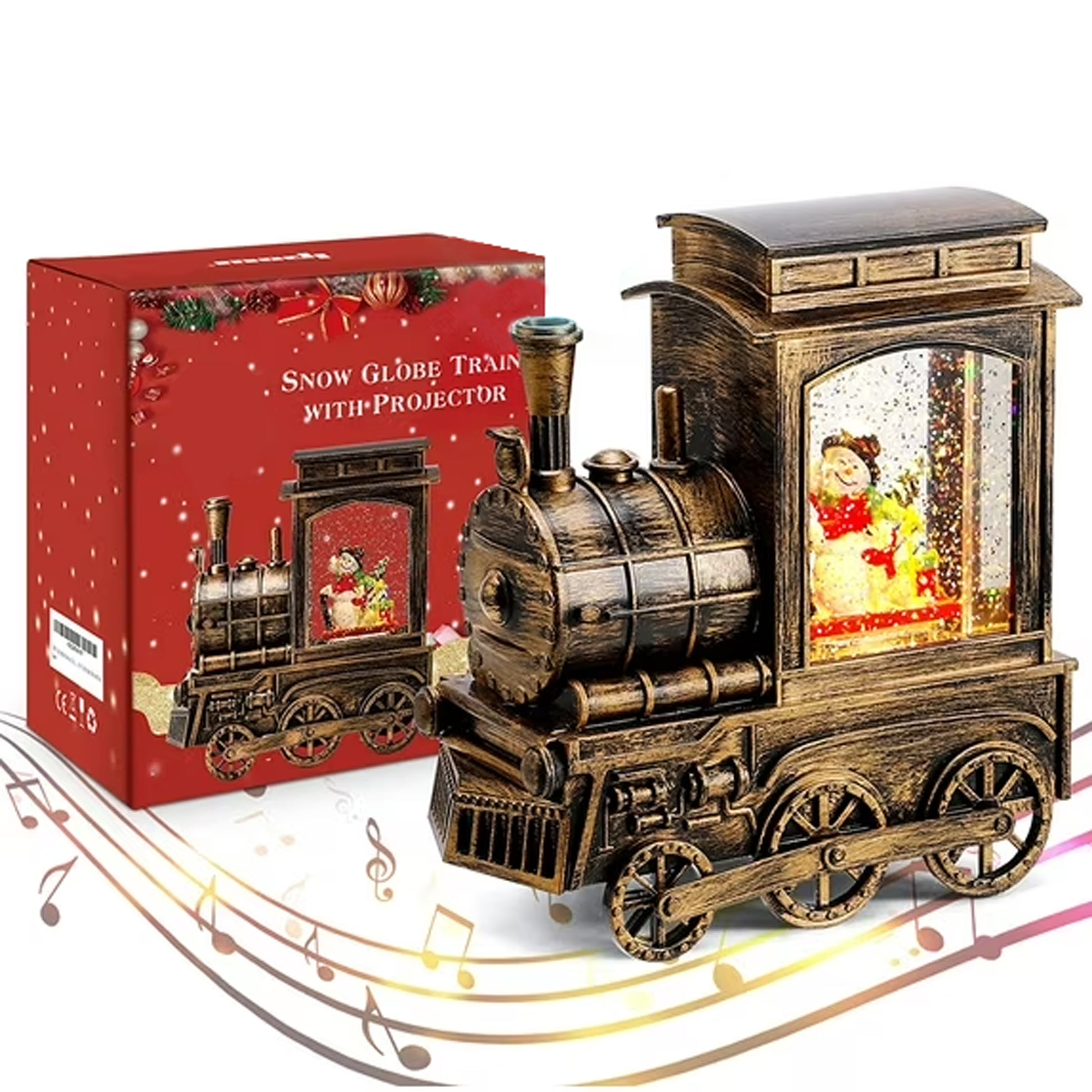 • 【Retro Train Style】Christmas Santa globes with music is made of hard ASB material, brass color, and the whole body is imitated lacquer design, creating a traditional retro design shape.