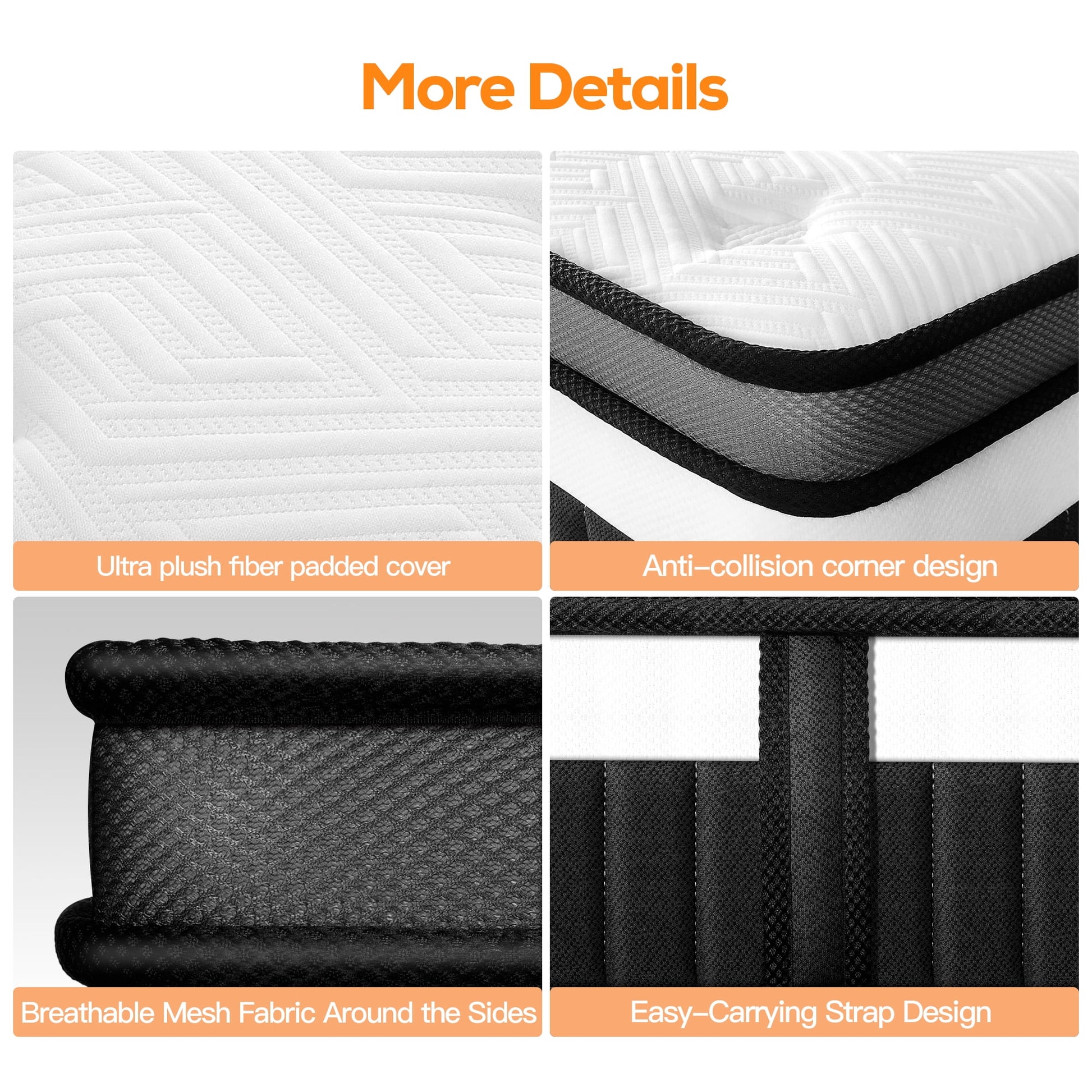 Unmatched Comfort and Support - This mattress features individually wrapped pocket springs and gel-infused memory foam for excellent support, pressure relief, and heat dissipation, ensuring a restful night's sleep every night.