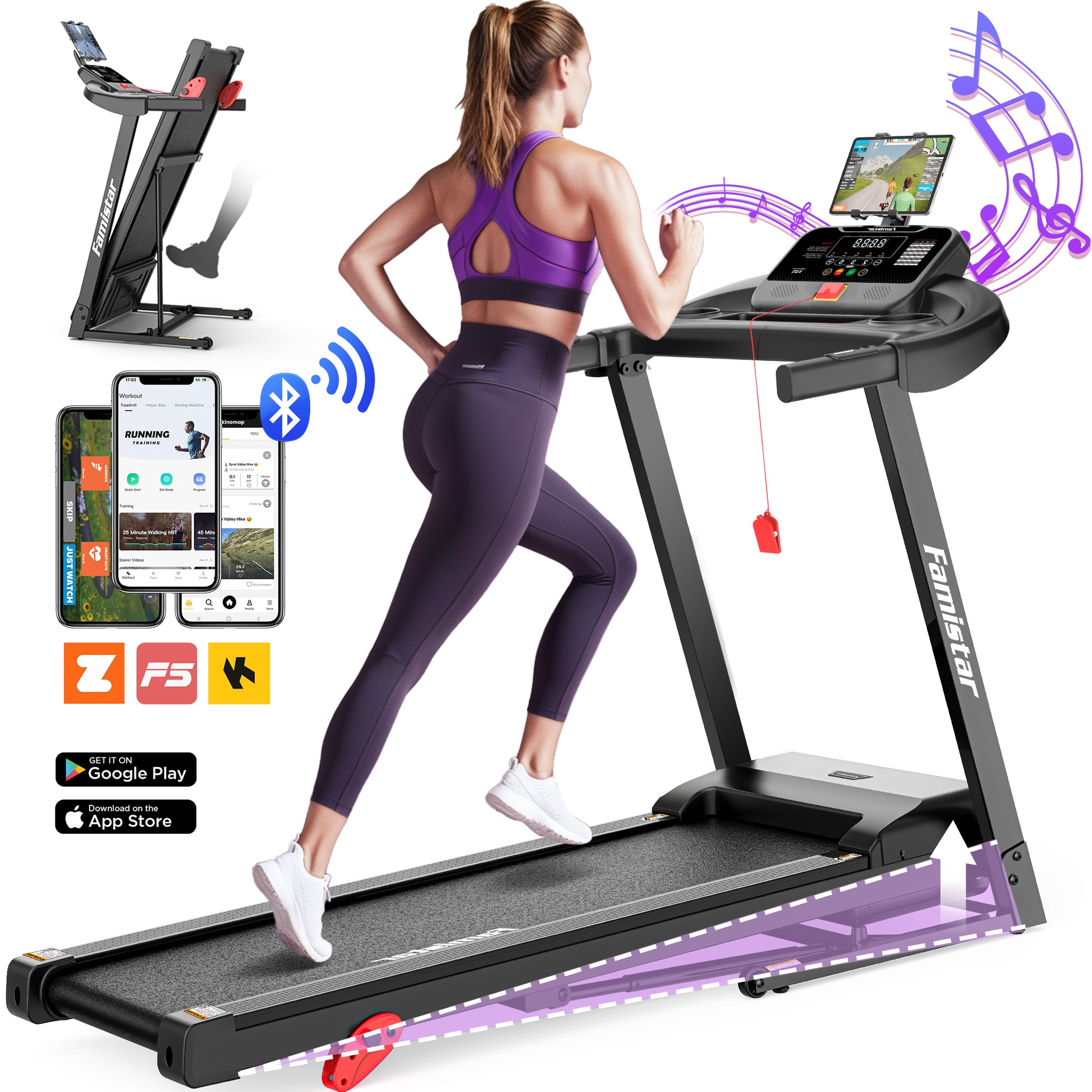 - 【Enhanced Fitness Tracking & APP Integration】The 300lbs capacity treadmill with APP control offers 64 preset programs and Bluetooth connectivity, enabling you to monitor your progress, set goals, and stay motivated with personalized workouts through your favorite fitness apps.